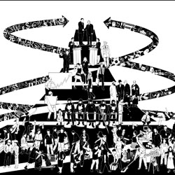 У нас есть, по сути, математическое доказательство, что худшее еще впереди, и что корпорации в этот самый момент воспитывают следующий кризис. Три математика, специализирующиеся на теории сложности в политехническом институте в Цюрихе опубликовали замечательную работу под названием «Сеть глобального корпоративного контроля», которая отображает тысячи ТНК в соответствии с их связями с другими ТНК. Начиная с базы данных 43000 корпораций, они постепенно совершенствуют соединения собственности, вверх и вниз, чтобы выделить наиболее взаимосвязанные компании, прибывающие в «ядре» 147 компаний, которые контролируют 40 процентов экономической прибыли всей выборки. Их карта выглядит астрономической картой ночного неба с тусклыми галактиками и ярким началом, но есть и некоторые сверхновые, соединенные линиями в десятки других звезд на карте, чтобы стать «ядром», компания должна иметь, по крайней мере, двадцать соединений.